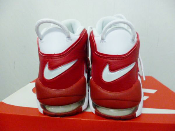 海外限定品です。ナイキ エア モア アップテンポにシカゴ・ブルズのホームカラーを彷彿させるセカンドカラーが登場!ホワイトのアッパーにレッドの A I R の文字が一度見たら忘れなれいくらいのインパクトを与えるスニーカー。