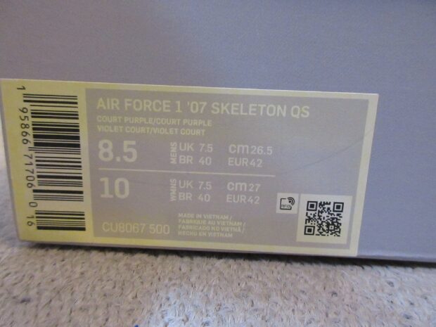 ナイキ NIKE AIR FORCE 1 ’07 Purple Skeleton エアフォース1 パープルスケルトン CU8067-500 スニーカー買取しました
