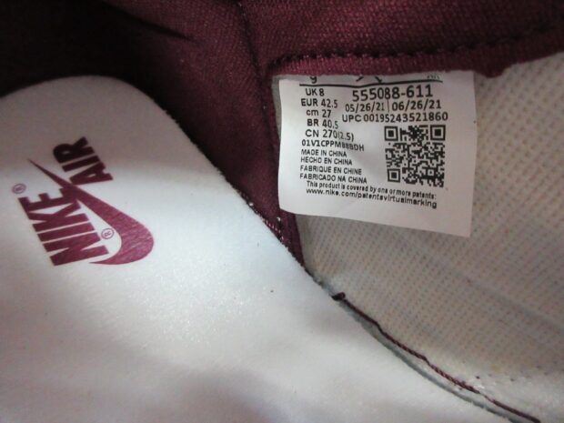 - ナイキ NIKE AIR JORDAN 1 RETRO HIGH OG BORDEAUX エアジョーダン1 ボルドー 555088-611 スニーカー買取しました。