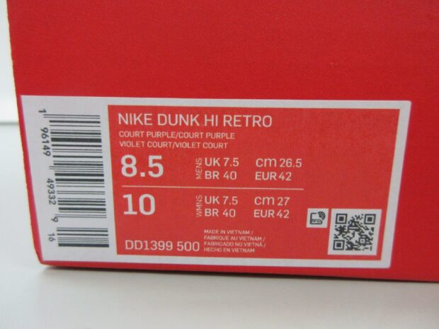ナイキ NIKE DUNK HIGH LAKERS レイカーズ ダンク ハイ コート パープル DD1399-500 スニーカー買取しました