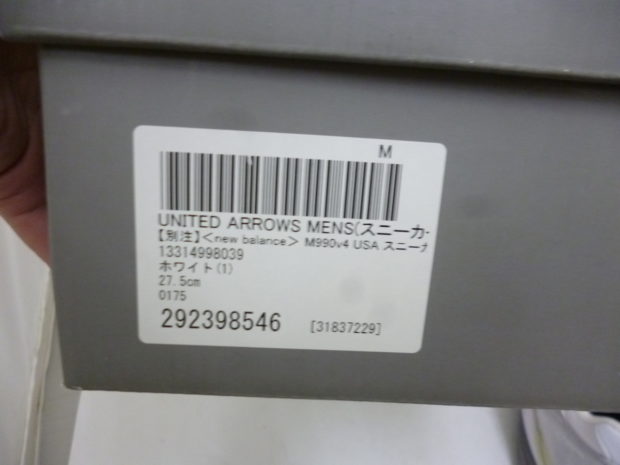 こんにちは。アルファストリートブログ担当です。 今回買取りしたスニーカーを紹介します。 ニューバランス NEW BALANCE UNITED ARROWS M990v4 状態は新品未使用品です。アローズとのコラボアイテムで人気のあるデザインです。 出張で神奈川県まで行ってきました。スニーカー、衣類を含め合計20点同時に買取り! ブランドスニーカー新品中古問わず買取りします。様々なブランドに対応しています。 スニーカー買取りならアルファストリートにお任せ! 【New Balance ニューバランス買取実績】 【スニーカー ブランド一覧】
